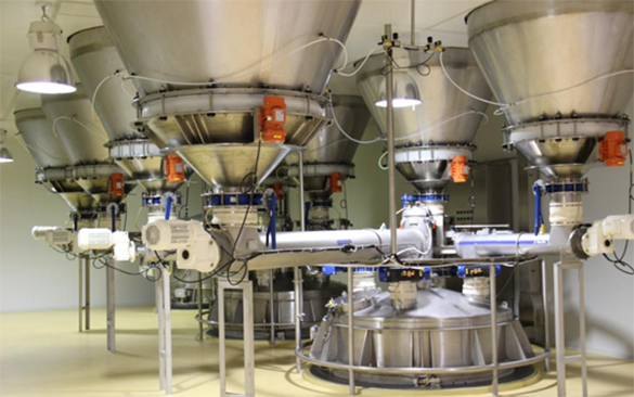 自動化配料系統(tǒng)是一種用于食品生產(chǎn)線,粉體生產(chǎn)線等上自動化的配料系統(tǒng),擅于解決粉體在卸料、粉體輸送、粉體混合、粉體配料過程中的全自動化配料生產(chǎn)。采用可編程控制器(PLC)為核芯,同時控制多臺秤,多種不同物料或控制輸出(根據(jù)工藝而定),智能化控制配料時間,配料各秤之間無任何等待,使得配料周期縮短,提高配料速度和產(chǎn)量。優(yōu)康恩科技的自動化配料系統(tǒng)可根據(jù)多種原材料嚴(yán)格按照一定的科學(xué)配比,進(jìn)行全自動化的、實(shí)時的、高精度的送料、化料、出料的控制裝置以滿足多品項配料乳制品的生產(chǎn)。 并且優(yōu)康恩科技的自動化配料系統(tǒng)可通過配料系統(tǒng)和防錯系統(tǒng)等方面技術(shù)升級,使配料系統(tǒng)能對市場需求變化做出快速適應(yīng),同時消除冗余設(shè)備,使企業(yè)獲得更大經(jīng)濟(jì)效益。